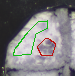 - Fine-grained spherical particles of salty H2O ice (5 µm average diameter, 5 wt.% NaCl, Sample b). Before electron irradiation.